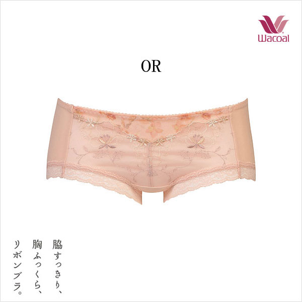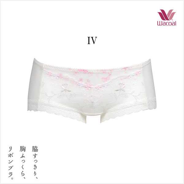 ワコール [ララン リボンブラ] ショーツ(ヒップハング) 「ビキニ・ボーイレングス(ヒップハング)] ・後ろ身頃はやわらかく伸びてはきごこちのよいナイロンベア天竺素材を使用 洗濯:洗濯機可 ※お洗濯は、必ず「取り扱い絵表示」にしたがってください。