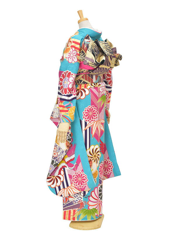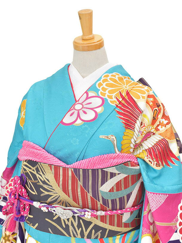 【レンタル】振袖 成人式 結納 およばれ 水色鶴モダンFR615トールサイズ 正絹 姉妹結婚式 個性的振袖 モダン着物 豪華振袖 2次会 式典 レンタル振袖 フルセット 足袋プレゼント 送料無料