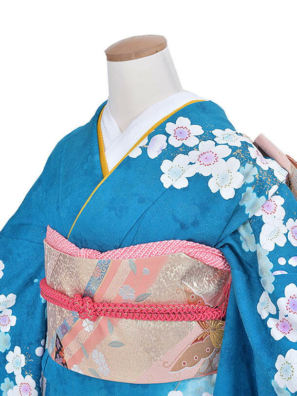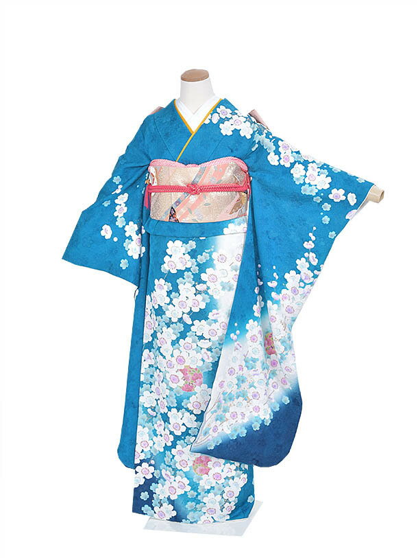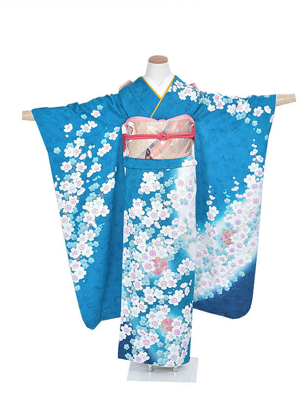 【レンタル】振袖 成人式 結納 トールサイズFR435 正絹 よばれ 姉妹結婚式 青振袖 着物 豪華振袖 2次会 式典 レンタル振袖 フルセット 足袋プレゼント 送料無料 165cm~175cm